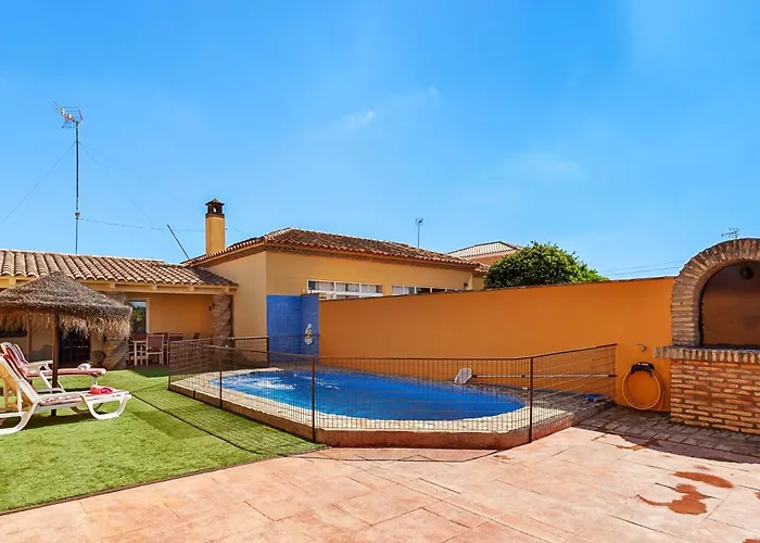 A poco más de 10 minutos en coche de esta villa los huéspedes encontrarán la Torre de Guzmán, mientras que la Playa de La Fontanilla En Conil está a unos 15 minutos en coche.